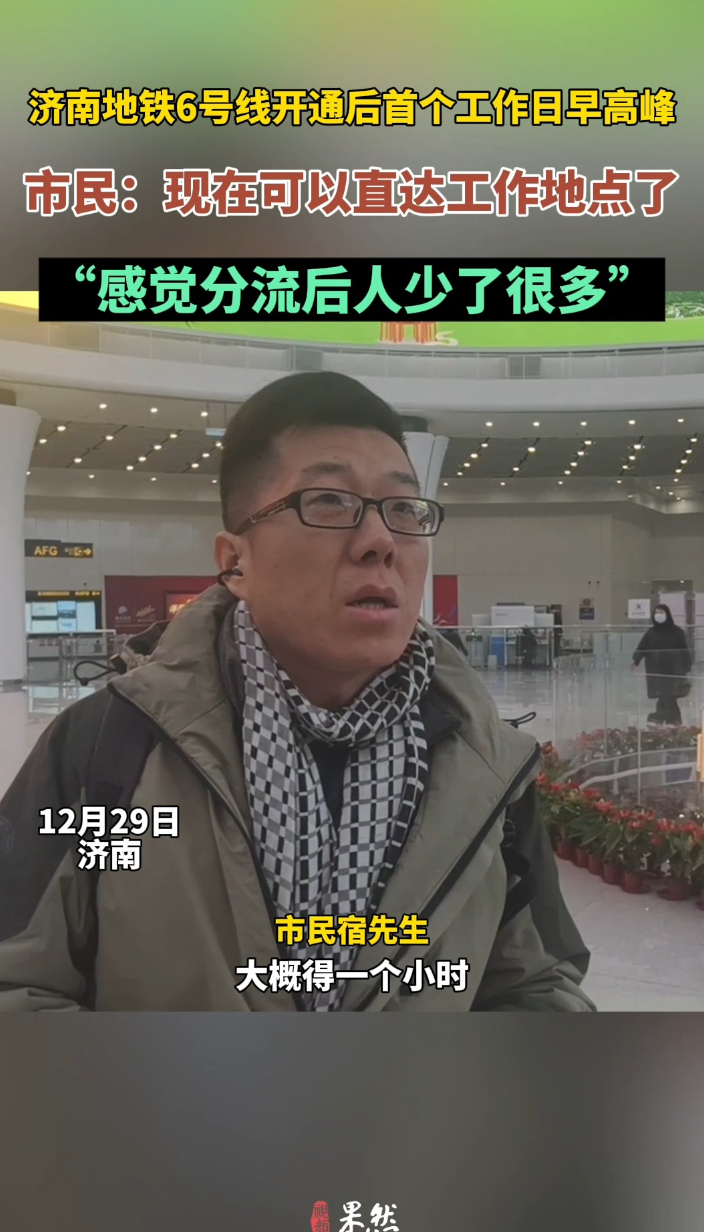 果然视频|济南地铁6号线开通,市民:直达公司门口,挺方便齐鲁晚报·齐鲁壹点客户端 11:16原创12月29日,济南6号线东段开通后迎来首个工作日,市民:现在可以直达工作地点了,挺方便。(齐鲁晚报·齐鲁壹点 杜春娜 见习记者 冯子芯)
