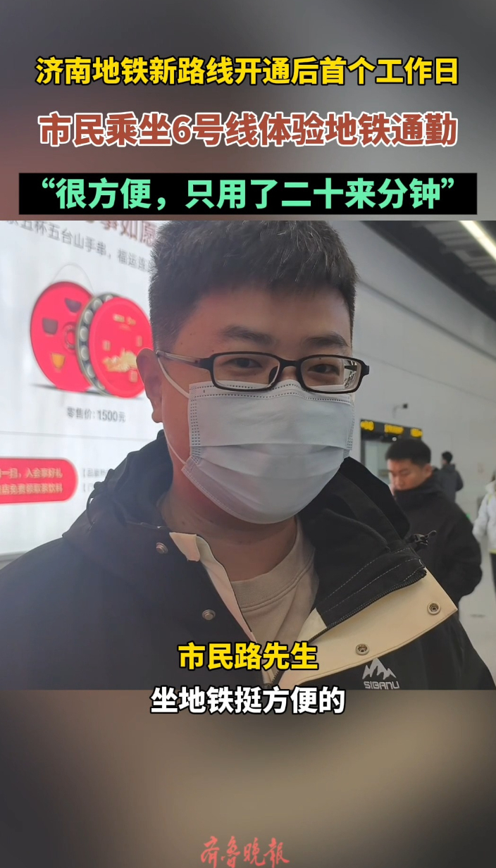 果然视频|济南地铁6号线开通后首个工作日,市民体验地铁通勤齐鲁晚报·齐鲁壹点客户端 11:16原创12月29日,济南地铁新路线开通后首个工作日,市民乘坐6号线体验地铁通勤,“挺方便,只用了二十来分钟”。(齐鲁晚报·齐鲁壹点 杜春娜 见习记者 冯子芯)