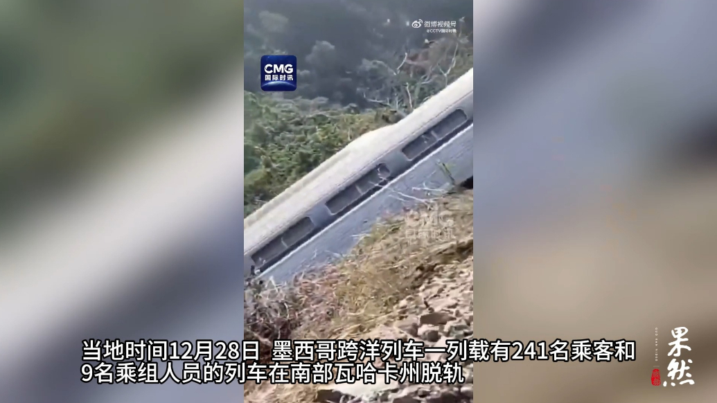 果然视频·看天下|载有200多人的墨西哥列车脱轨,至少13人死亡齐鲁晚报·齐鲁壹点客户端 13:48原创当地时间12月28日,墨西哥跨洋列车一列载有241名乘客和9名乘组人员的列车在南部瓦哈卡州脱轨。据运营该线路的墨西哥海军方面称,事故已造成至少13人死亡,此外还有近百人受伤,其中多人伤势严重。