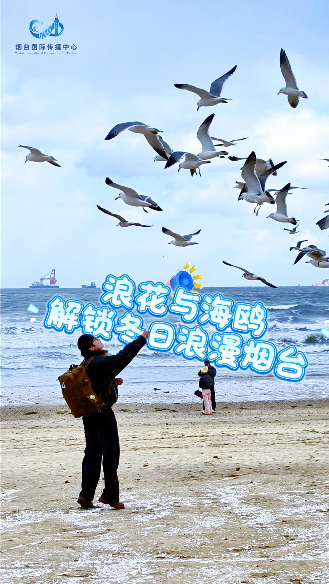 浪花与海鸥,解锁烟台冬日浪漫 #烟台 #冬日#海鸥 #海边