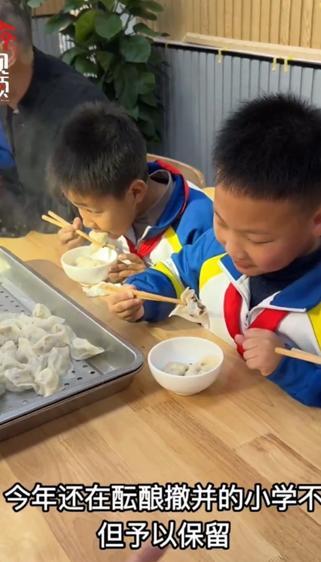 就在我身后,蛟龙小学因为学生数量不足,学校无法保留食堂,孩子们的午饭成了问题。但是项目的落地首先解决了孩子的就餐问题,今年还在酝酿撤并的小学,不但予以保留,未来还可能扩大招生规模。