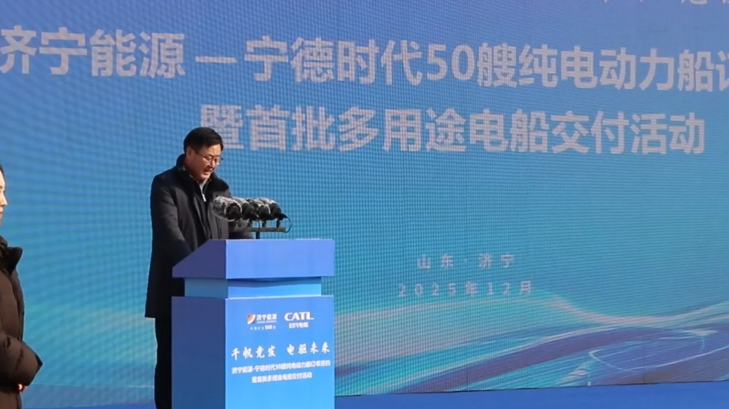 果然视频|“电化运河”再向前,山东首支规模船队将亮相京杭运河大众报业·齐鲁壹点 12:1412月29日,济宁能源集团与宁德时代电船科技有限公司“50艘纯电动力船订单签约暨首批5艘多用途电船交付活动”顺利举行。本次仪式交付的首批5艘纯电动货船及新签订的50艘订单船舶,将全部投入京杭运河流域,覆盖长三角至华北核心物流通道,单船年运力预计突破50万吨。 (齐鲁晚报·齐鲁壹点记者 陈丹)