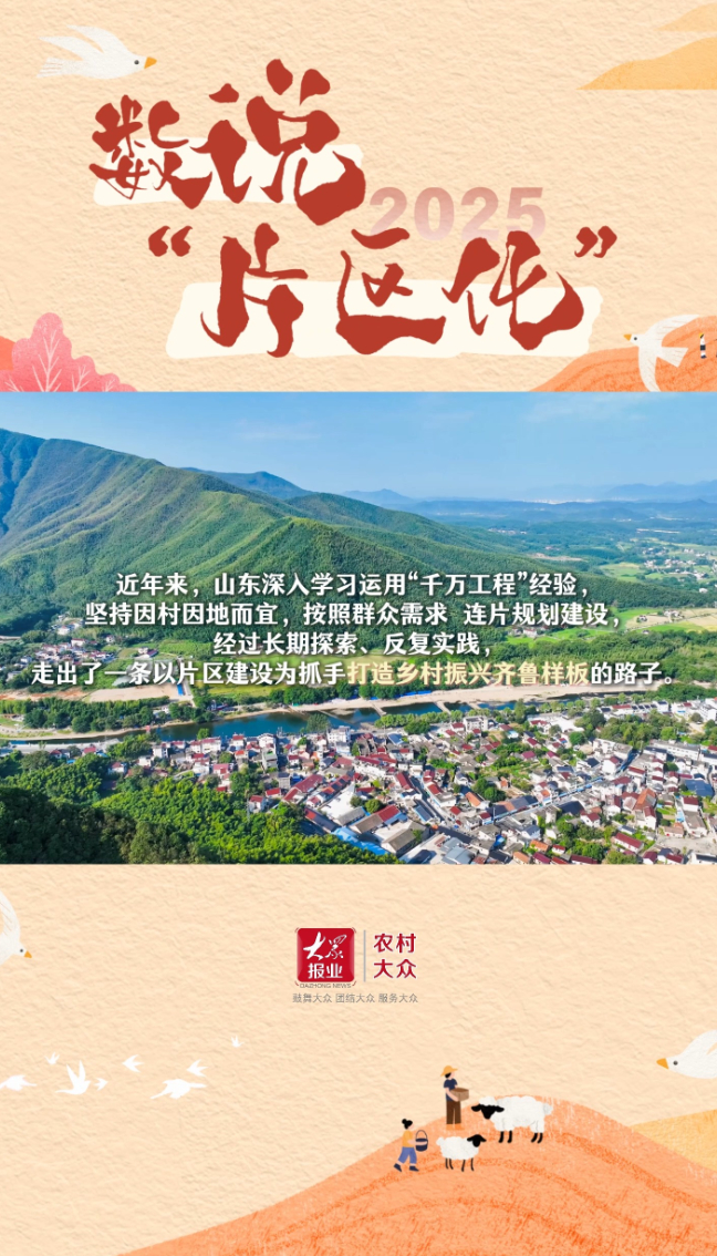 山东“三农”这一年 | 数说“片区化”大众新闻·农村大众 09:32原创近年来,山东深入学习运用“千万工程”经验,坚持因村因地而宜,按照群众需求,连片规划建设,经过长期探索、反复实践,走出了一条以片区建设为抓手打造乡村振兴齐鲁样板的路子。(大众新闻·农村大众记者 刘雯 张婷 刘晓续)