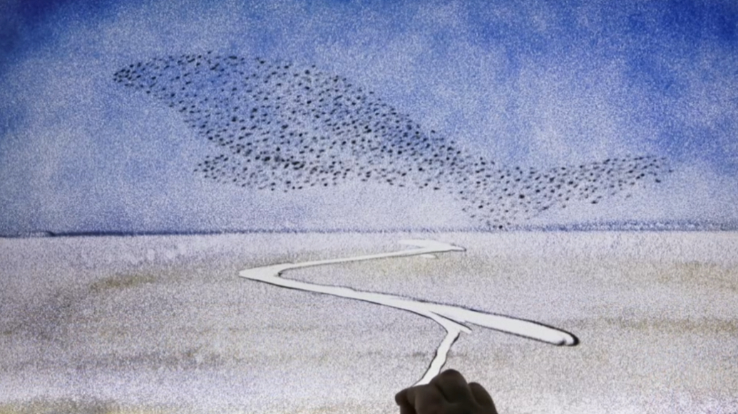 鸟浪将歇,东营文旅为你送上这份沙画礼 鸟浪将歇,这份沙画礼,送你与未赴的山海。(大众新闻记者 马瑞琳 通讯员 刘杨)