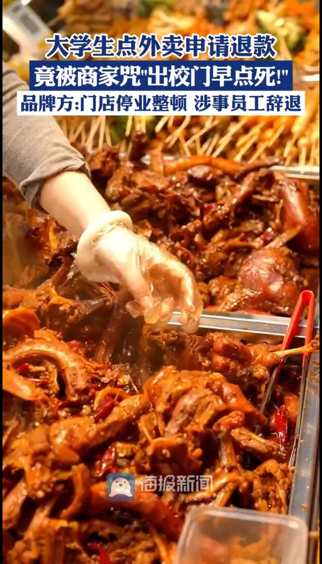 主播说 | 大学生点外卖申请退款,竟被商家咒“出校门早点死!”,品牌方:门店停业整顿,涉事员工辞退