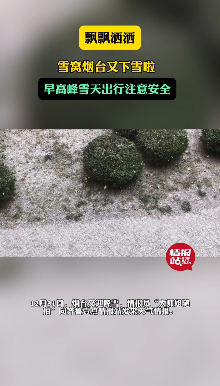 天气情报站|飘飘洒洒!烟台又下雪啦,早高峰雪天出行注意安全 08:43 大众报业·齐鲁壹点 微信扫码扫码下载客户端12月31日,烟台又迎降雪,情报员“大师姐随拍”向齐鲁壹点情报站发来天气情报。雪花纷纷扬扬漫天飞舞,好似白色蝴蝶飞舞,“2025年最后一天的一场雪,于今晨7点40分悄然而下,拍摄于烟台蓬莱。”情报员说。