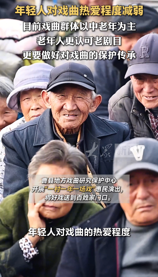 一元好戏|年轻人对戏曲热爱程度减弱,老年人更认可老剧目,更要做好对戏曲的保护传承大众新闻 10:41原创曹县送戏下乡文化惠民演出,以群众喜闻乐见的方式,将戏曲送到村民家门口,满足了当地群众精神文化需求。据曹县地方戏曲研究保护中心主任王朦介绍,目前面临的戏迷群体大多数都是中老年人,他们比较认可的都是一些老剧目,年轻人对戏曲的热爱程度有所减弱。戏曲作为一个文化的瑰宝,一定要保护和传承下去。(大众新闻记者 孙雪萌 谢巨洋)