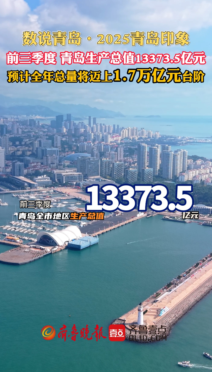 数说青岛·2025青岛印象丨预计GDP将迈上1.7万亿元台阶齐鲁晚报·齐鲁壹点客户端 10:13原创2025年前三季度,青岛全市地区生产总值13373.5亿元,同比增长5.4%,增速高于全国0.2个百分点,总量占全省17.3%,比去年同期提高0.1个百分点,预计全年总量将迈上1.7万亿元台阶。 (齐鲁晚报·齐鲁壹点 李自强)