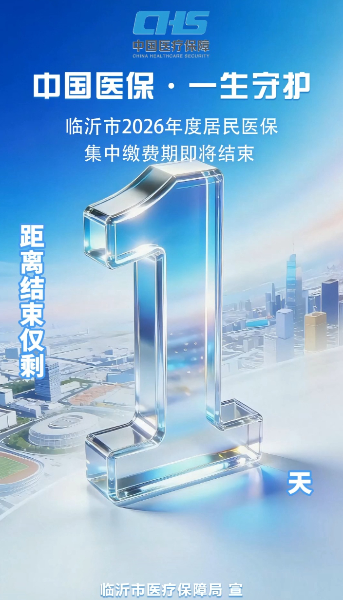 仅剩最后1天!临沂市2026年度居民医保集中缴费期即将结束大众报业·齐鲁壹点 13:12仅剩最后一天!临沂市2026年度居民医保集中缴费期即将结束,未完成参保缴费的市民,请抓紧时间办理缴费手续,确保及时享受医保待遇。