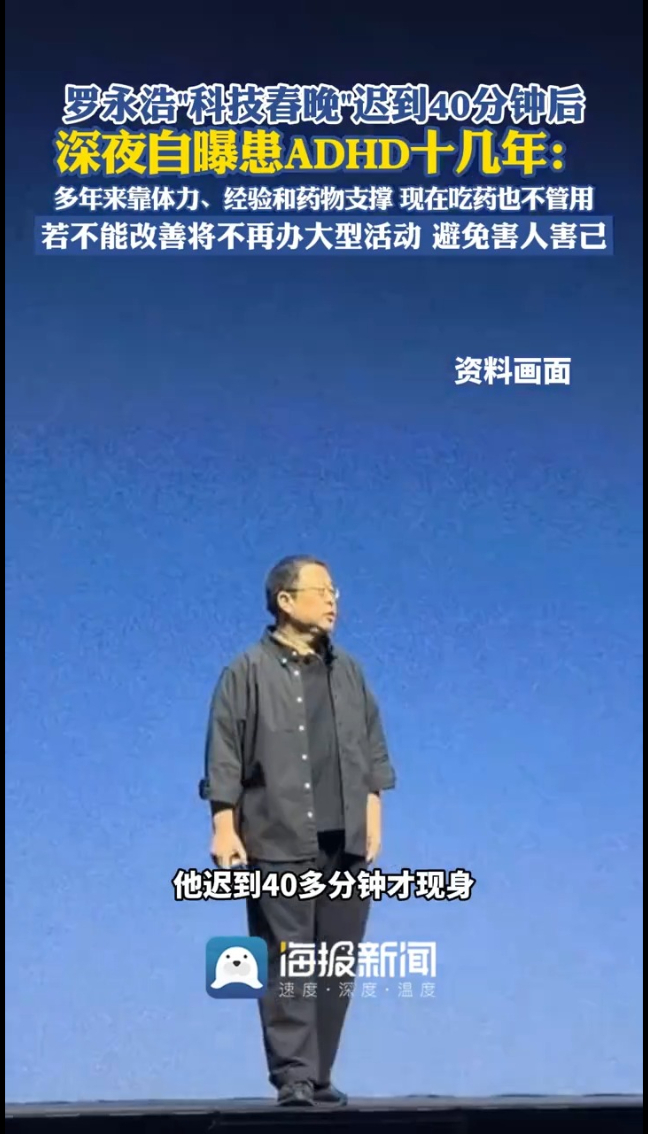 主播说 | 罗永浩“科技春晚”迟到40分钟后 深夜自曝患ADHD十几年: 多年来靠体力、经验和药物支撑 现在吃药也不管用 若不能改善将不再办大型活动 避免害人害己