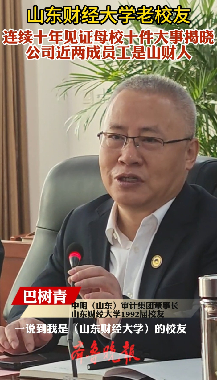 果然视频|又有新气象!山财大校友连续十年见证母校十件大事揭晓 16:24 原创齐鲁晚报·齐鲁壹点客户端 微信扫码扫码下载客户端12月31日,“山东中明杯”2025年度山东财经大学“十件大事”正式揭晓,山东财经大学1992届校友巴树青连续十年在现场见证。作为中明(山东)审计集团董事长,巴树青用自己的方式参与着母校的发展,也见证着母校十年走过的足迹。 (齐鲁晚报·齐鲁壹点记者 尹明亮)