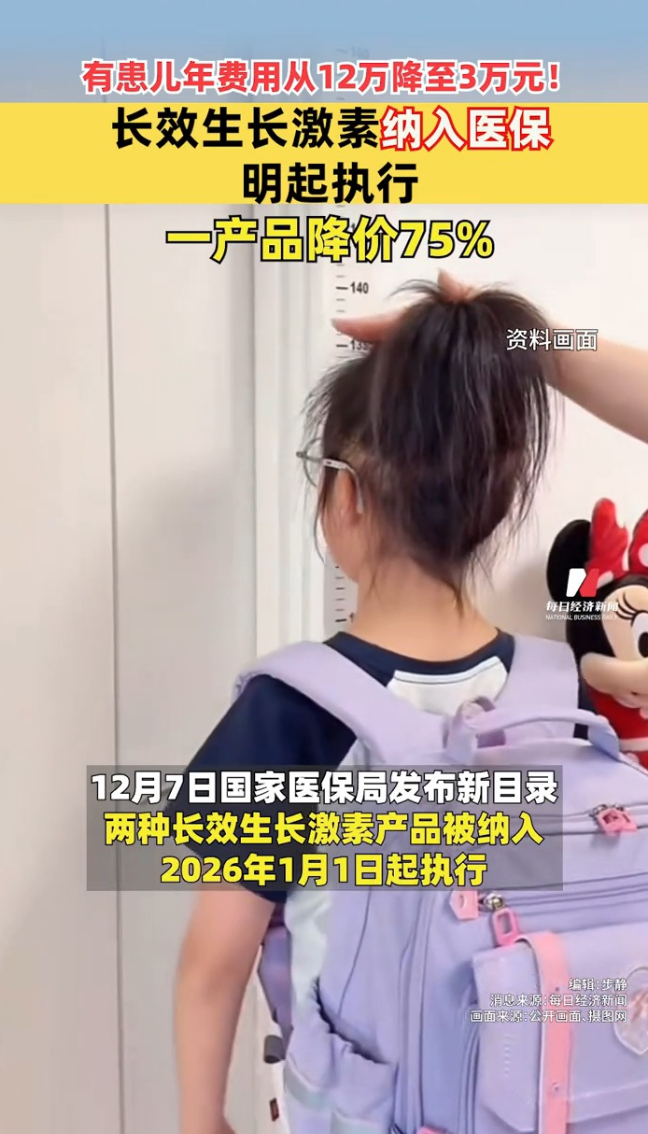 有患儿年费用从12万降至3万元!长效生长激素纳入医保明起执行 ,一产品降价75%