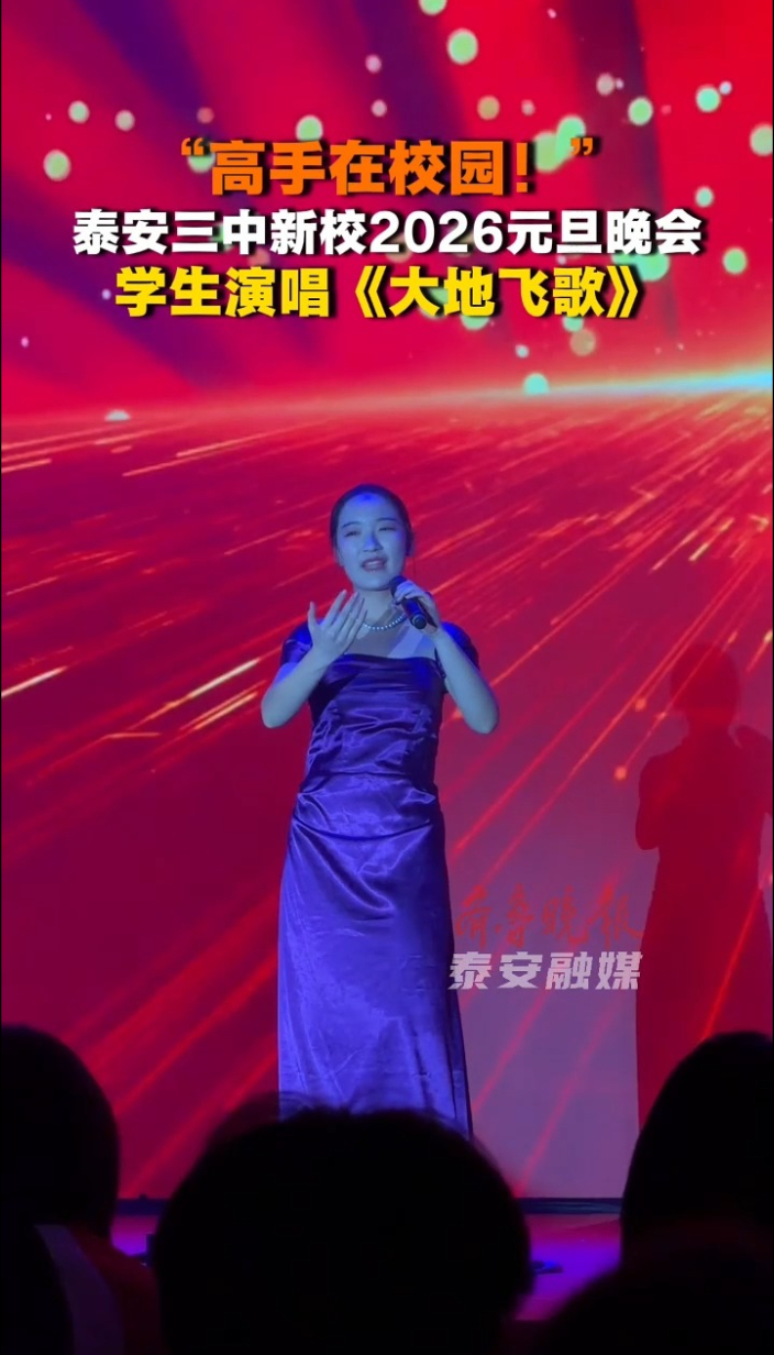果然视频丨泰安三中新校2026元旦晚会,学生演唱《大地飞歌》