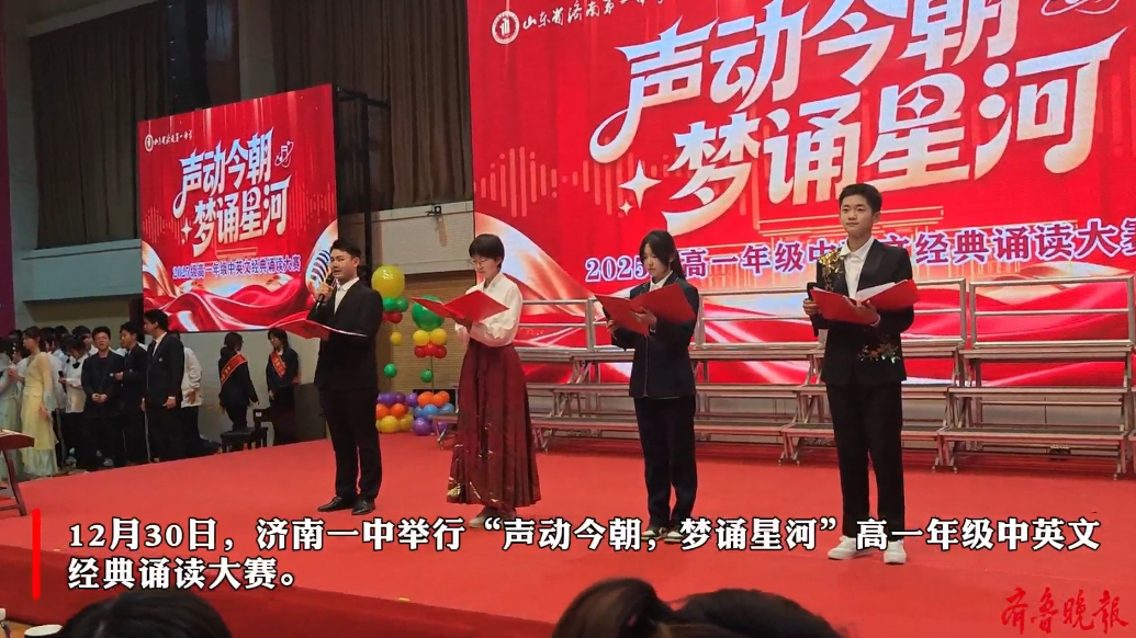 果然视频丨济南一中高一年级中英文经典诵读大赛欢乐来袭! 19:21 大众报业·齐鲁壹点 微信扫码扫码下载客户端12月30日,济南一中举行“声动今朝,梦诵星河”高一年级中英文经典诵读大赛。(齐鲁晚报·齐鲁壹点记者 延瑜)