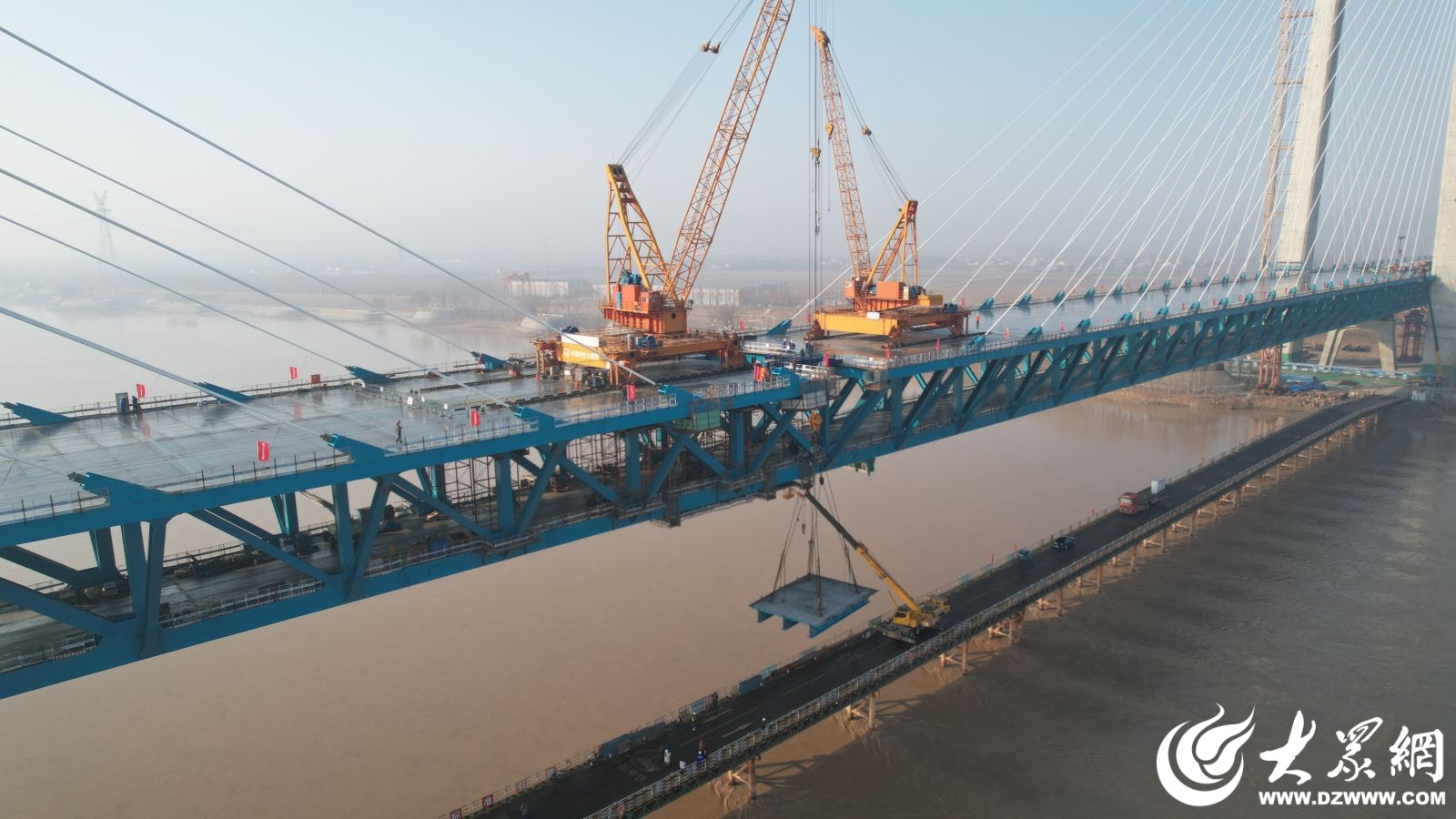 “黄河第一跨”成功牵手 东营黄河公铁大桥主桥钢梁顺利合龙