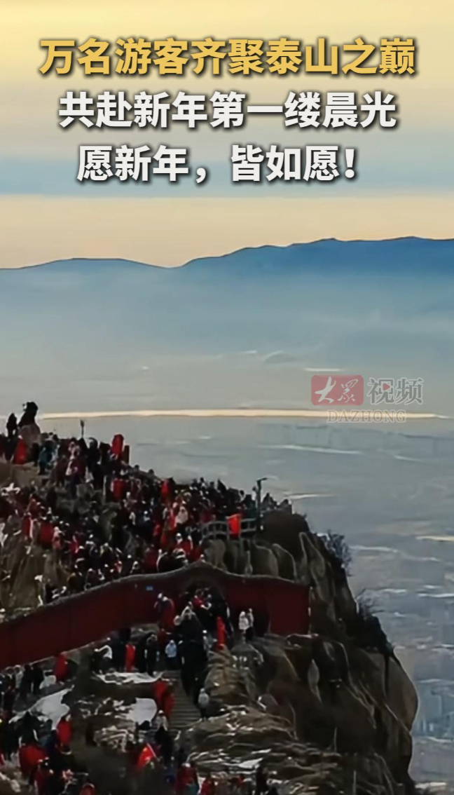 万名游客齐聚泰山之巅,共赴新年第一缕晨光!愿新年,皆如愿!