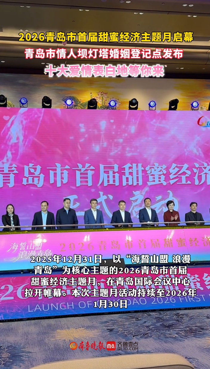 青岛市首届甜蜜经济主题月启幕,十大表白地让爱更有仪式感齐鲁晚报·齐鲁壹点客户端 11:38原创2025年12月31日,以“海誓山盟 浪漫青岛”为核心主题的2026青岛市首届甜蜜经济主题月,在青岛国际会议中心拉开帷幕。本次主题月活动持续至2026年1月30日。现场,青岛市情人坝灯塔婚姻登记点暨甜蜜经济会客厅正式发布。还发布了“青岛甜蜜经济十大爱情表白地”,为给爱侣提供更具仪式感的打卡指南。 (齐鲁晚报·齐鲁壹点 杨雪)