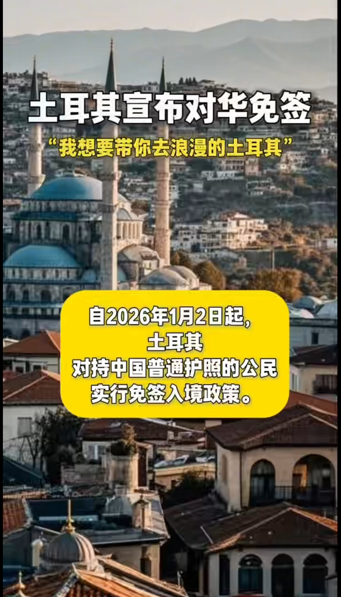 果然视频|土耳其对华免签,携程用户互动关注年增长率超50%大众报业·齐鲁壹点 11:59据央视新闻消息:当地时间12月31日,土耳其《官方公报》发布总统令,宣布自2026年1月2日起,对持中国普通护照的公民实行免签入境政策。根据规定,在每180天内,免签停留时间累计不超过90天,适用于旅游和过境目的。 携程平台用户互动关注年增长率 >50%,需求推动航空市场运力及旅行行业增长:2025土耳其冬季运力同比2019年增长29.5%。