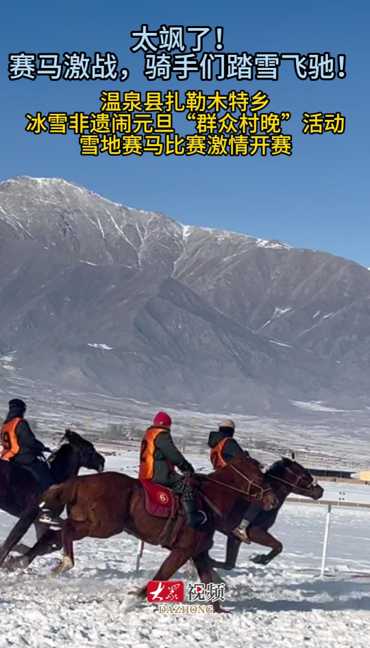 新疆的冬天亚克西|太飒了!赛马激战,骑手们踏雪飞驰大众新闻 昨天18:20原创近日,“新疆的冬天亚克西”主题采访活动走进温泉县扎勒木特乡。这里正举办一场冰雪非遗闹元旦“群众村晚”活动,活动现场的雪地赛马比赛激情开赛。骑手们驭马飞驰,马蹄踏雪溅起银花,激烈的角逐点燃了现场的冬日氛围。(大众新闻记者 刘云鹤 实习生 于司晨)