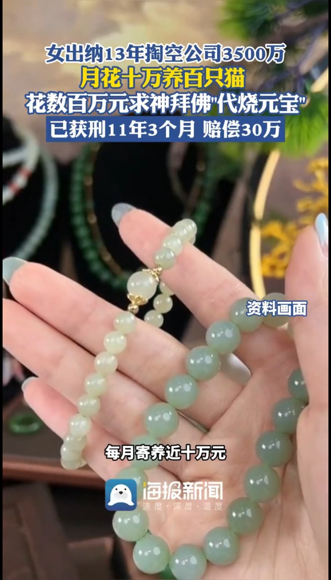 主播说丨女出纳13年掏空公司3500万,月花十万养百只猫 ,花数百万元求神拜佛“代烧元宝”已获刑11年3个月 赔偿30万