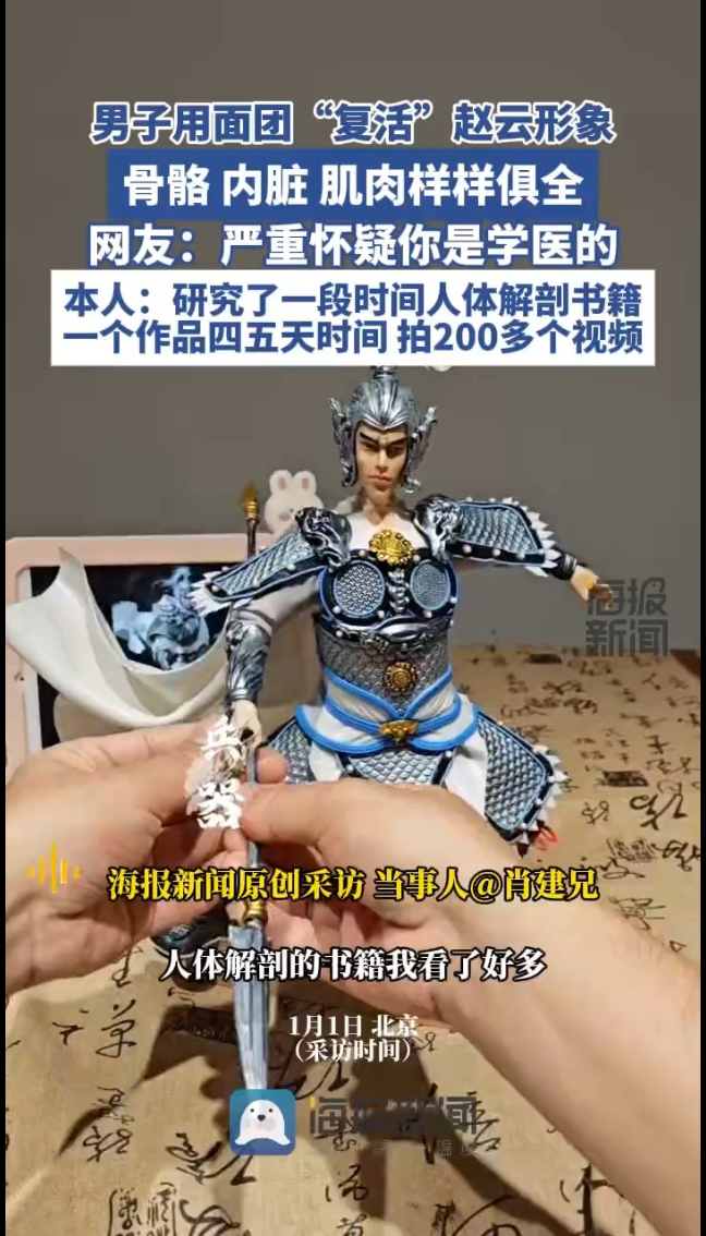 男子用面团“复活”赵云 从骨骼到内脏和肌肉样样俱全