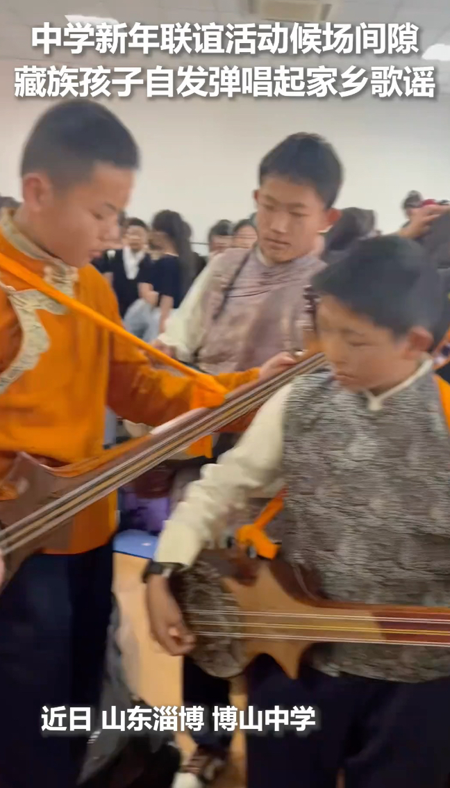 淄博一中学新年联谊活动上,藏族男孩自发唱起家乡歌谣《次认吉巴》