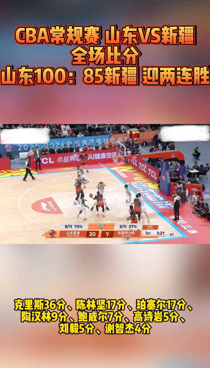 果然视频|两连胜!山东男篮100:85新疆,克里斯36分齐鲁晚报·齐鲁壹点客户端 昨天22:39原创1月2日晚,CBA常规赛继续进行,山东男篮主场100:85击败新疆男篮,迎来两连胜。克里斯发挥出色,得到36分。(齐鲁晚报·齐鲁壹点 冯子涵)