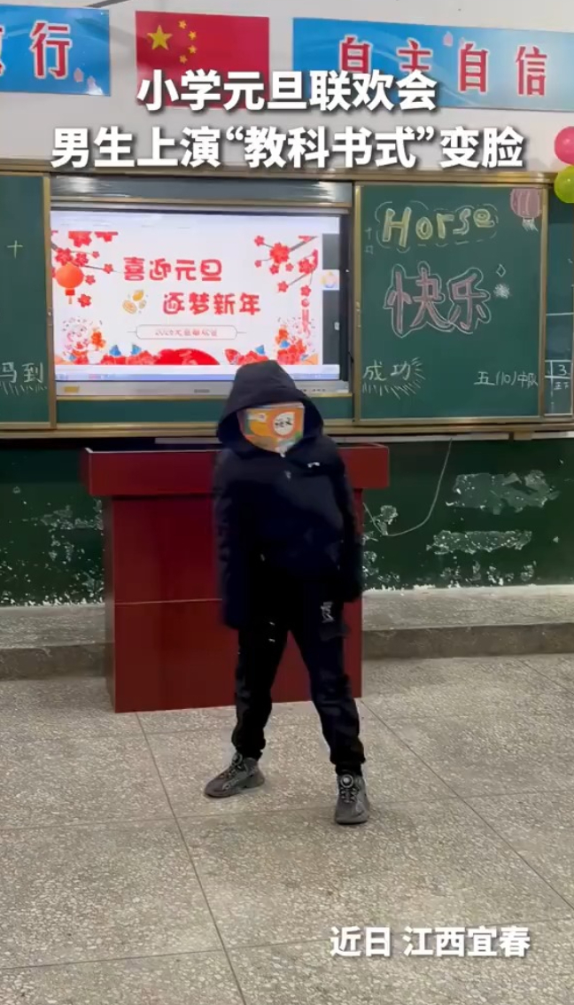 近日,江西宜春。小学元旦联欢会,男生上演“教科书式”变脸。看到最后。