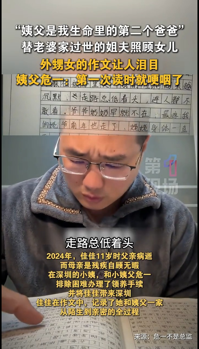 “我成了别人的第二个爸爸”!深圳博主读外甥女作文,看哭全网