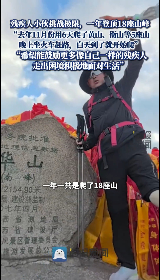 残疾人小伙挑战极限,一年登顶18座山峰