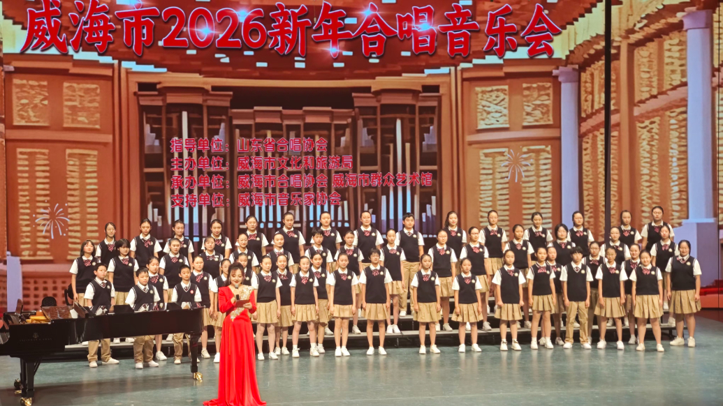 在威海市 2026 新年合唱音乐会上,威海市望海园中学少年合唱团作为唯一一所代表教育系统参加展演的学校合唱团,以专业、规范的演出状态,高质量地完成了此次演出任务,充分展现了学校日常扎实的管理体制和训练效果。未来,学校将继续秉承“以美育人”的教育理念,不断加强艺术教育的开展,培养更多具有艺术素养和创新能力的优秀人才,为推动威海市教育事业的发展做出更大贡献。