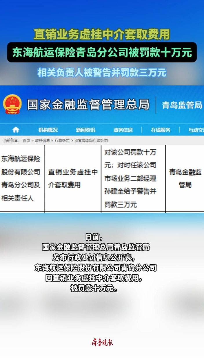 果然视频丨违规套取费用,东海航运保险青岛分公司被罚款十万元大众报业·齐鲁壹点 01-05日前,国家金融监督管理总局青岛监管局发布行政处罚信息公开表,东海航运保险股份有限公司青岛分公司因直销业务虚挂中介套取费用,被罚款十万元。 (齐鲁晚报·齐鲁壹点记者)