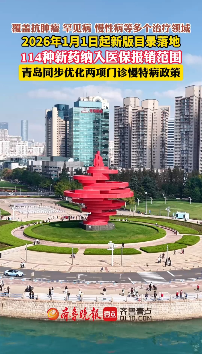 果然视频丨青岛市114种新药纳入医保报销范围齐鲁晚报·齐鲁壹点客户端 01-05原创自2026年1月1日起,青岛市正式执行《国家基本医疗保险、生育保险和工伤保险药品目录(2025年)》。新版目录落地后,共有114种新增药品纳入青岛市医保乙类药品报销范围,覆盖抗肿瘤、罕见病、慢性病、抗感染等多个治疗领域。青岛市已明确这些新增乙类药品的个人先行自付比例,具体药品名单及比例可查询青岛市医疗保障局官方网站。 (齐鲁晚报·齐鲁壹点 刁明杰)