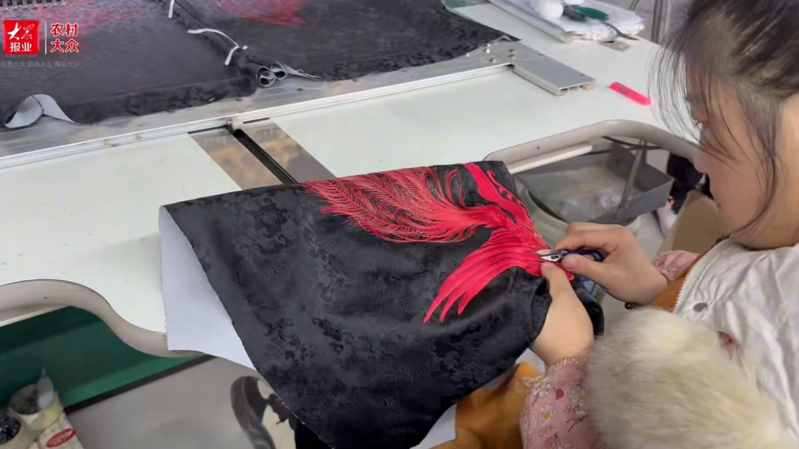 返乡创业90后,绣出民族风马甲大众新闻·农村大众 01-05原创在菏泽市定陶区半堤镇东闫村,返乡创业的90后青年闫国轩,带领村民们制作民族风马甲。2017年,他辞去外面工作,回到东闫村创办工作室,专注私人定制国潮服饰,专攻民族风马甲。他的工坊工人多是本村的村民,经过培训后负责裁剪、缝纫、绣花等工序,还能照顾老人孩子。闫国轩通过自学电脑绣花,图案都是由自己设计,满足了定制化的市场需求。(大众新闻·农村大众记者 郑希平)