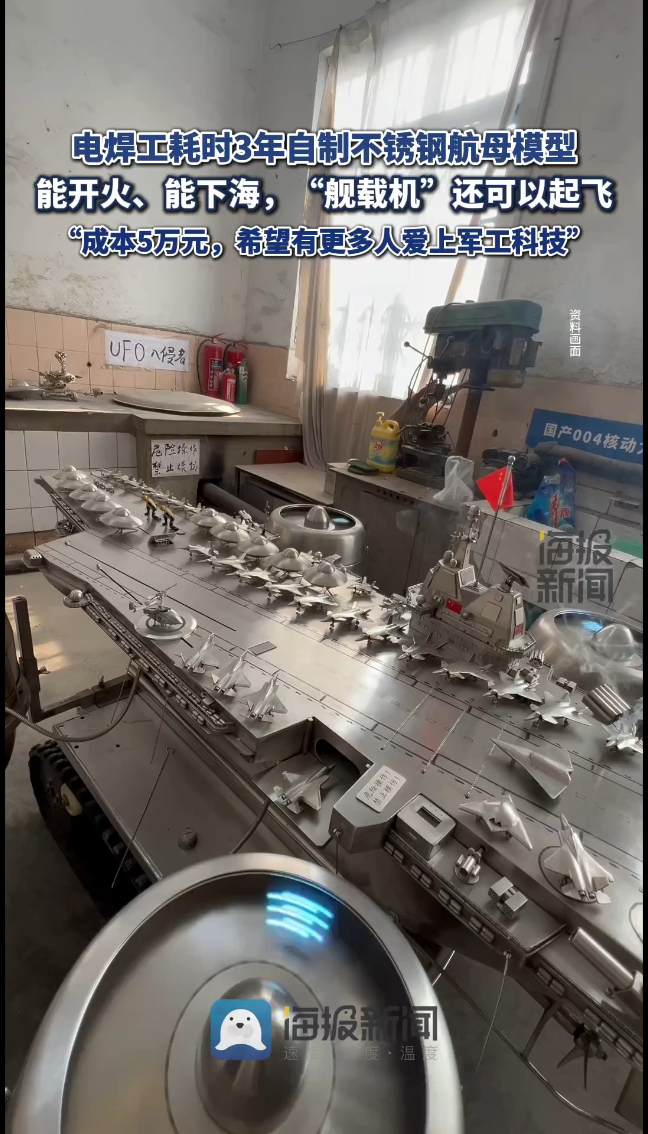电焊工耗时3年自制不锈钢航母模型:成本5万元,希望有更多人爱上军工科技