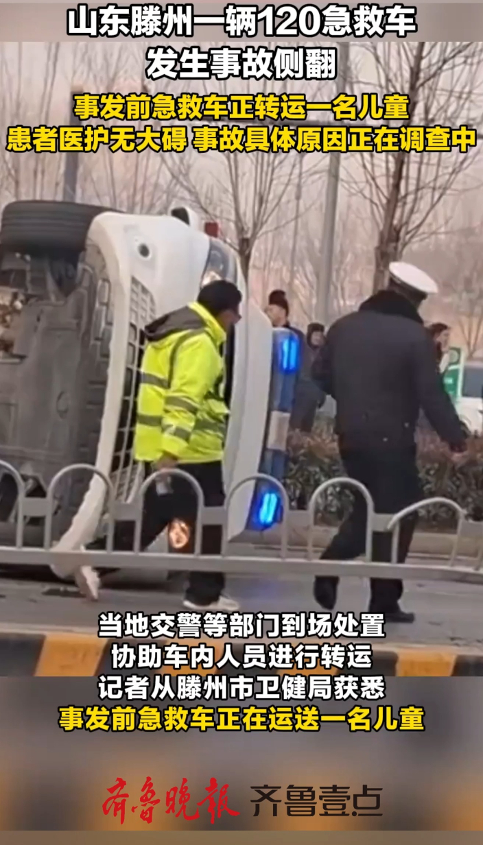 山东滕州一辆120急救车侧翻,事发前正转运一名儿童