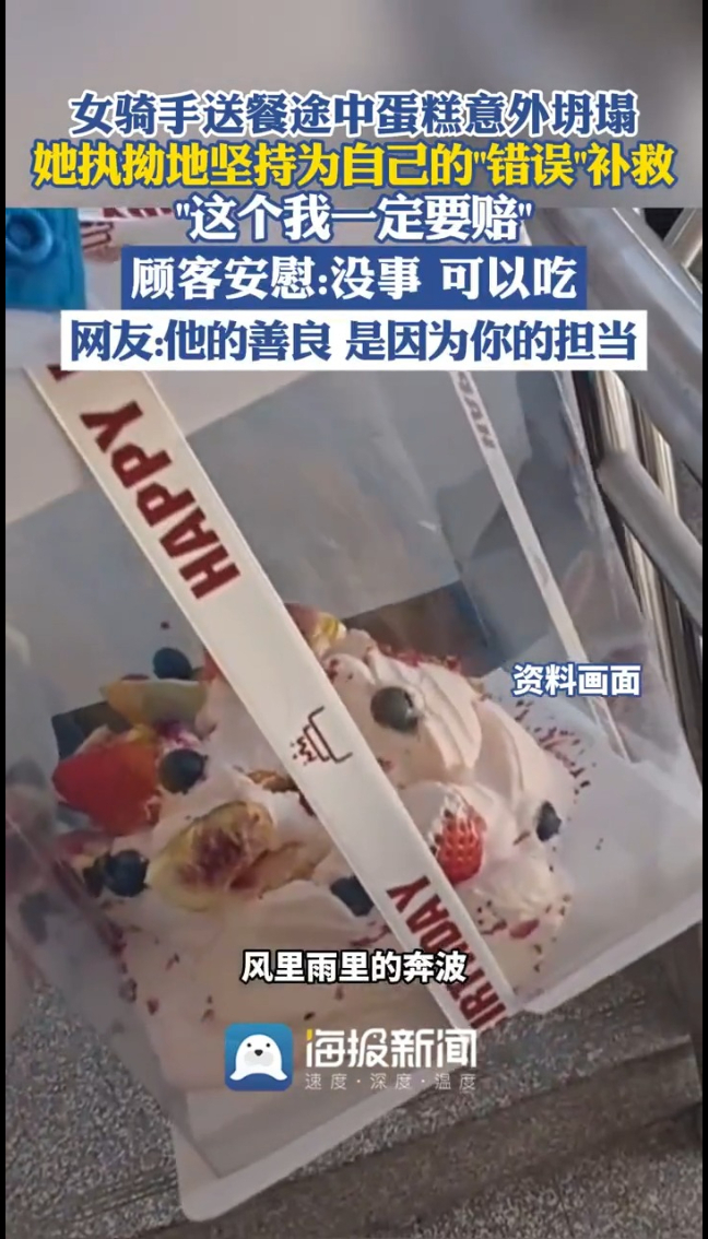 主播说 | 女骑手送餐途中蛋糕意外坍塌 顾客安慰:没事 可以吃 网友:他们的善良是因为你的担当