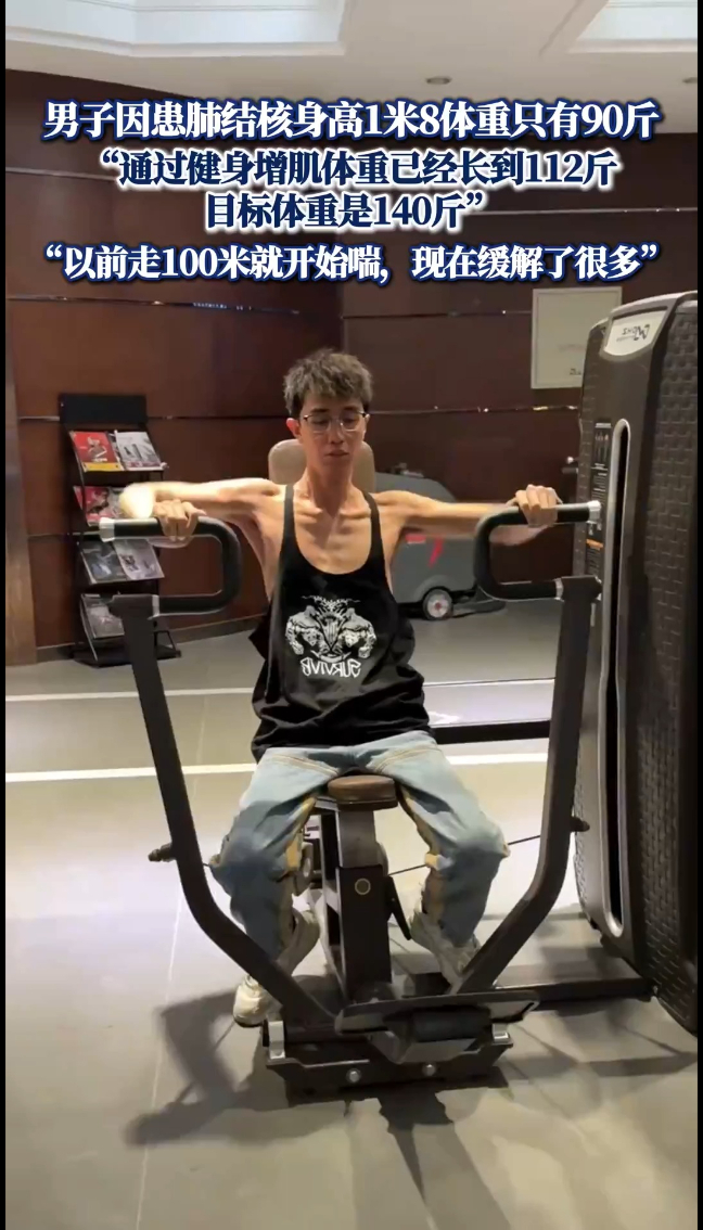 男子因患肺结核身高1米8体重只有90斤:“通过健身增肌体重已经长到112斤,目标体重是140斤”