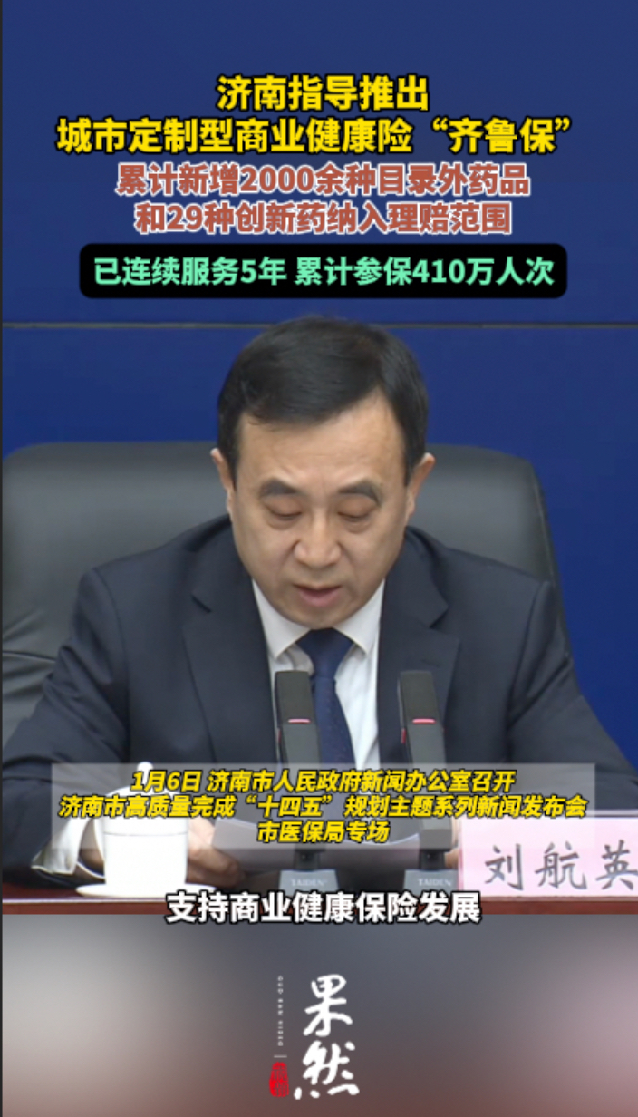 果然视频|“齐鲁保”累计参保410万人次齐鲁晚报·齐鲁壹点客户端 01-06原创1月6日,济南市人民政府新闻办公室召开济南市高质量完成“十四五”规划主题系列新闻发布会—市医保局专场。记者在会上获悉,济南推出城市定制型商业健康险“齐鲁保”,累计新增2000余种目录外药品和29种创新药纳入理赔范围,已连续服务5年、累计参保410万人次。(齐鲁晚报·齐鲁壹点记者 石晟绮)