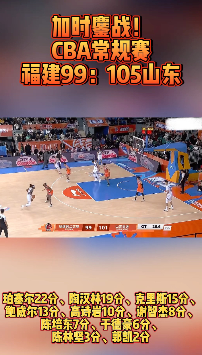 果然视频|加时险胜!山东105:99击败福建,迎来四连胜 01-06 原创齐鲁晚报·齐鲁壹点客户端 微信扫码扫码下载客户端1月6日晚,CBA常规赛继续进行,山东高速男篮客场对阵福建男篮,邱彪无缘指挥,山东男篮与对手历经加时鏖战,最终以105:99小胜对手,迎来四连胜。(齐鲁晚报·齐鲁壹点 冯子涵)