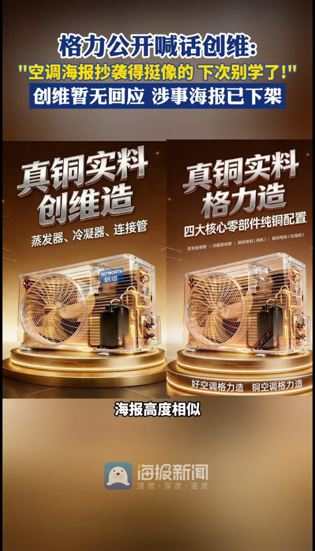 主播说|格力公开喊话创维:空调海报抄袭得挺像的,下次别学了!