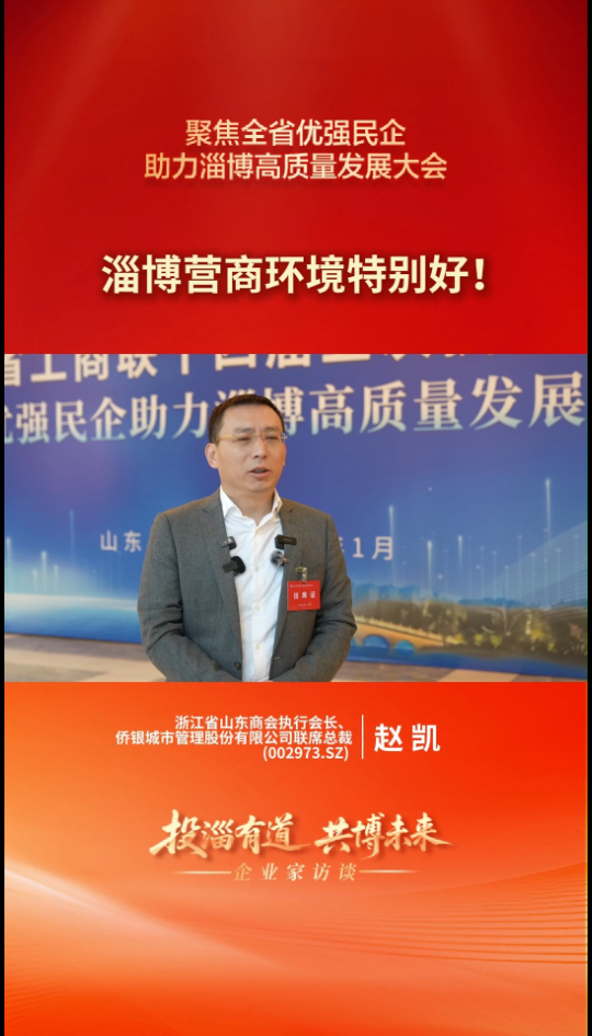 浙江省山东商会执行会长、侨银城市管理股份有限公司联席总裁(002973.SZ)赵凯说:“这次来淄博,给我的感觉就是第一营商环境特别好,二是城市卫生环境也比较好。我碰到很多朋友都说淄博人很热情!”