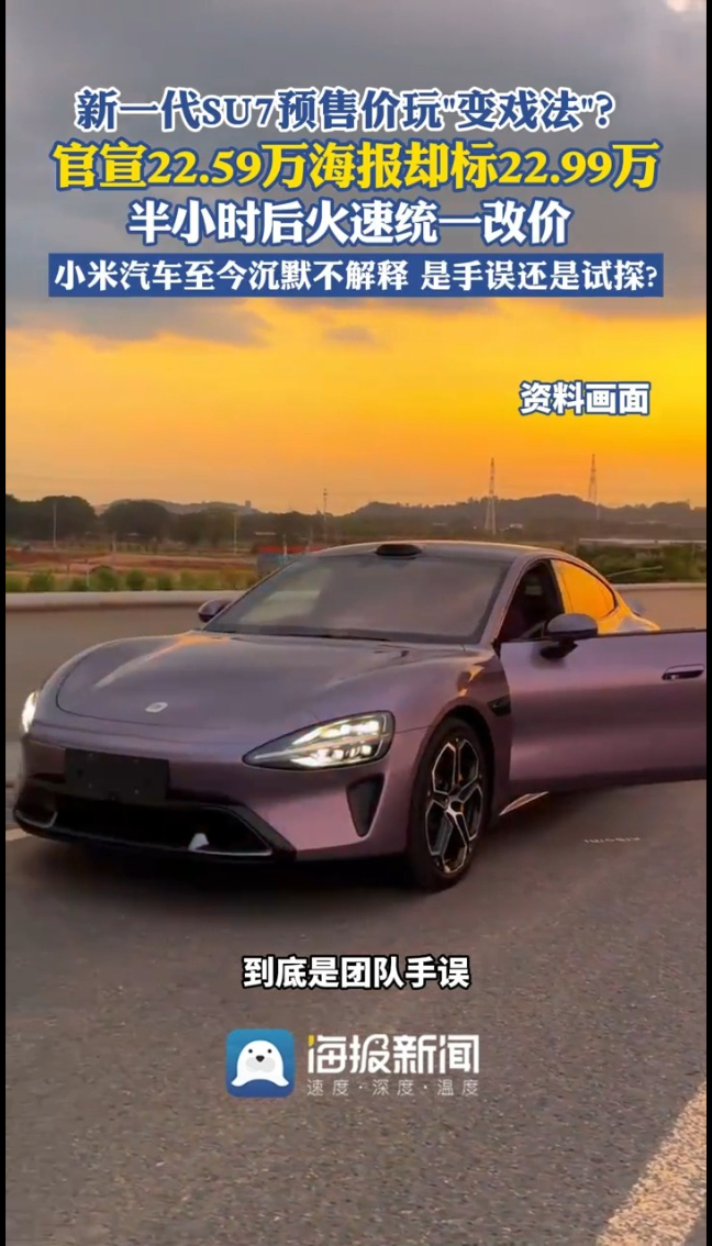 主播说丨新一代SU7预售价玩“变戏法”?官宣22.59万海报却标22.99万,半小时后火速统一改价,小米汽车至今沉默不解释,是手误还是试探?
