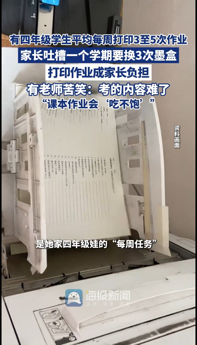 有家长苦笑:“一个学期要换3次墨盒,打印店老板都认识我了!”老师夜里临时发资料,家长随时待命,生怕耽误孩子。一句“愿打就打,不打也行”的回复,更让家长憋屈却不敢言——怕反映后,老师给孩子“穿小鞋”。
