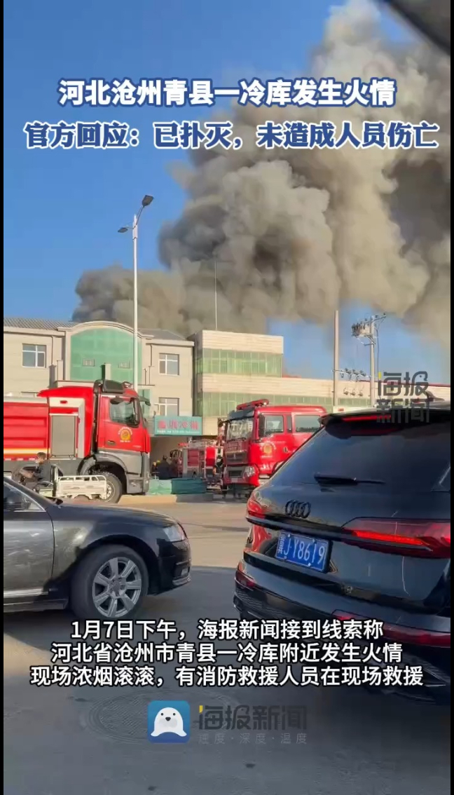 河北沧州青县一冷库发生火情 官方回应:已扑灭,未造成人员伤亡