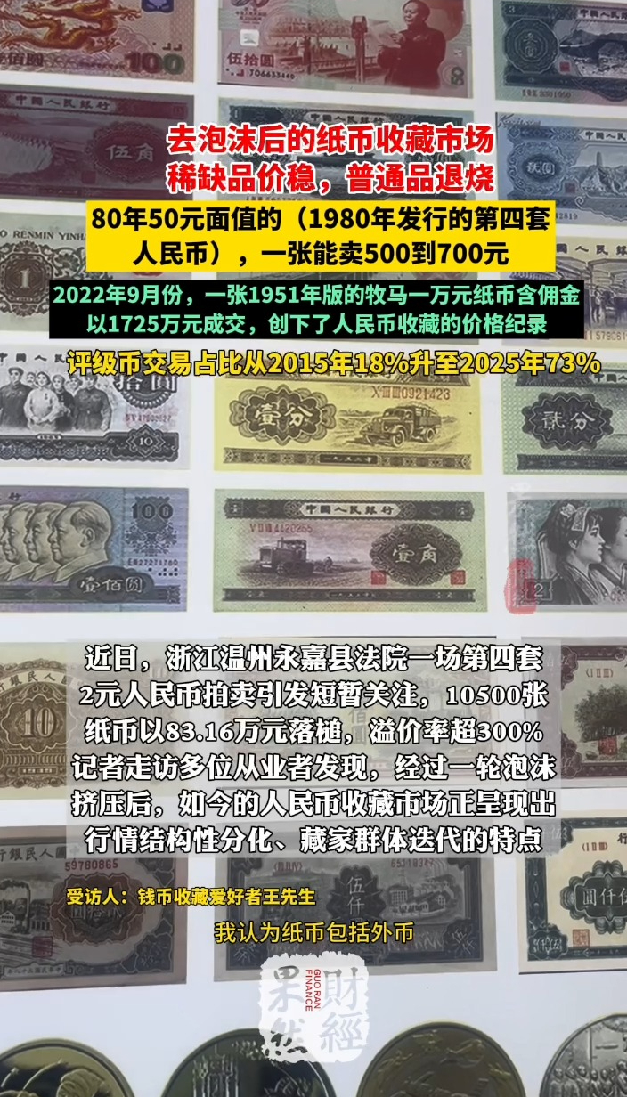 果然财经|评级币交易占比升至73%,藏家群体迭代齐鲁晚报·齐鲁壹点客户端 昨天11:38原创记者走访多位钱币收藏从业者发现,经过一轮泡沫挤压后,如今的人民币收藏市场正呈现出行情结构性分化、藏家群体迭代的特点。为了规避风险,许多钱币收藏爱好者越来越青睐评级币。据官方数据显示,专业钱币鉴定评级品牌。爱藏评级2024年钱币评级量912万枚,总价值超20亿元;评级币交易占比从2015年18%升至2025年73%。