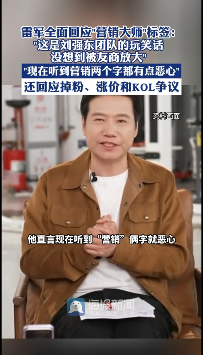 对于“营销大师”的标签,他直言现在听到“营销”俩字就恶心,揭秘这标签是2013年左右一档娱乐节目里,刘强东团队的玩笑话,没想到被友商放大利用至今。作为工程师出身的创业者,他吐槽被说“只靠营销”就是恶意污蔑,毕竟大家买的是小米产品不是营销。