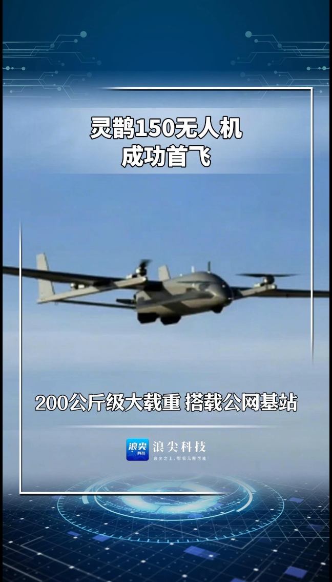 浪尖科技 | 灵鹊150无人机成功首飞 :200公斤级大载重 搭载公网基站