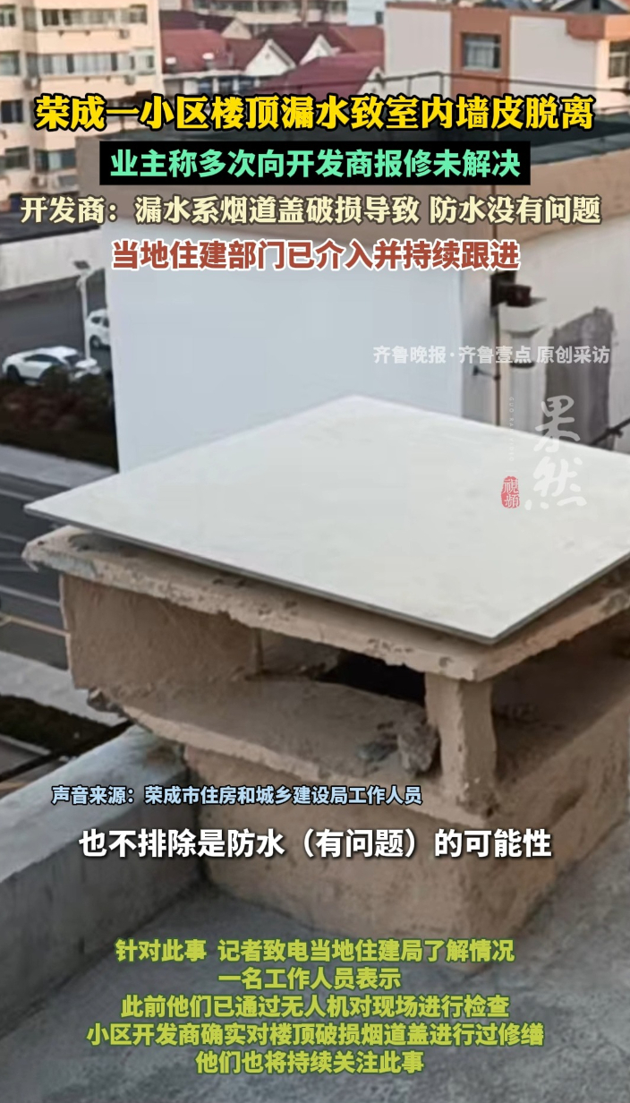 果然视频|荣成一小区屋顶漏水致墙皮脱落,当地住建局已介入