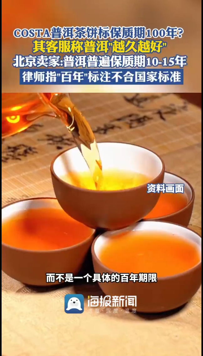 主播说丨COSTA普洱茶饼标保质期100年? 其客服称普洱“越久越好” 北京卖家:普洱普遍保质期10-15年 律师指“百年”标注不合国家标准